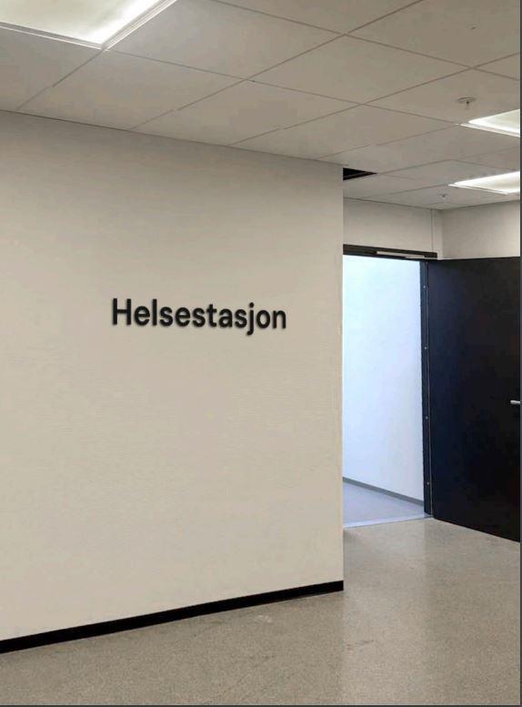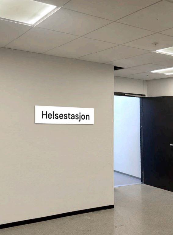 Skiltet skal ha god kontrast til veggen. Skifttypen skal være DM Sans semibold.